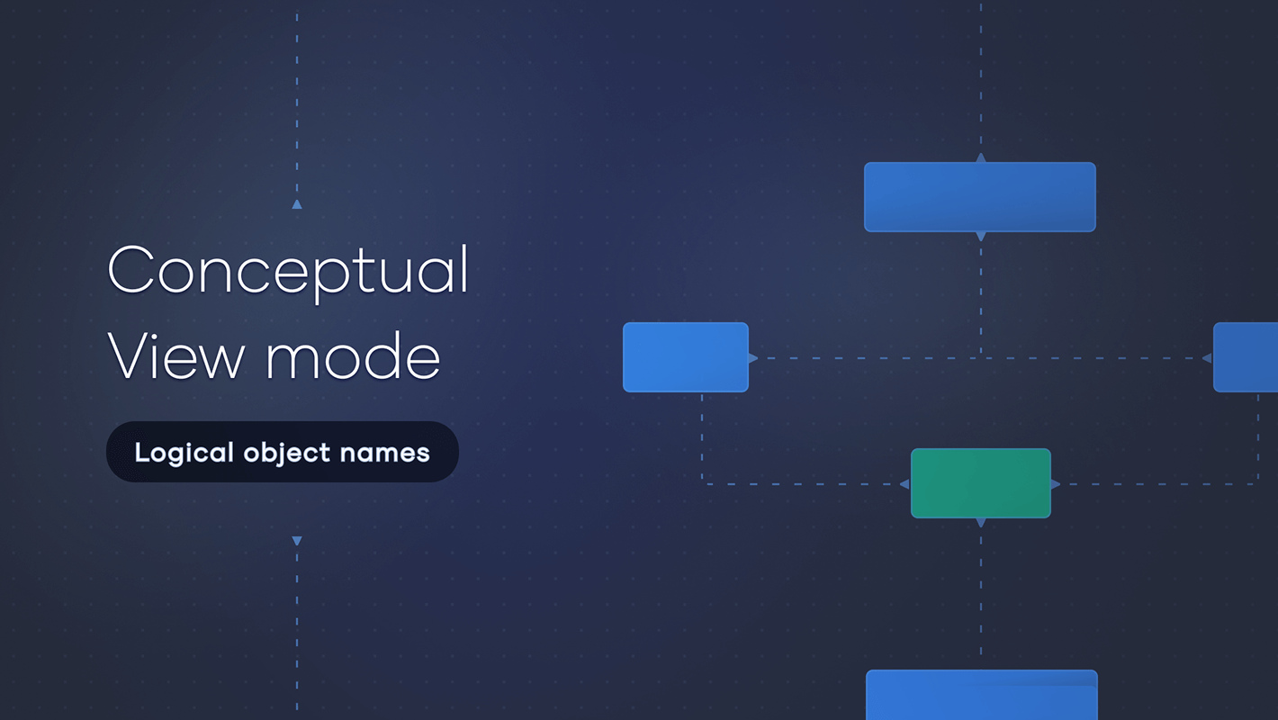 The Conceptual View mode will display Logical object names, similar to what is seen in the Logical View mode, within physical projects. This change aligns more closely with the intended purpose of the Conceptual View mode and aims to improve readability. Please note that if you share conceptual diagrams through Confluence or Iframe, the object names will appear as Logical names.